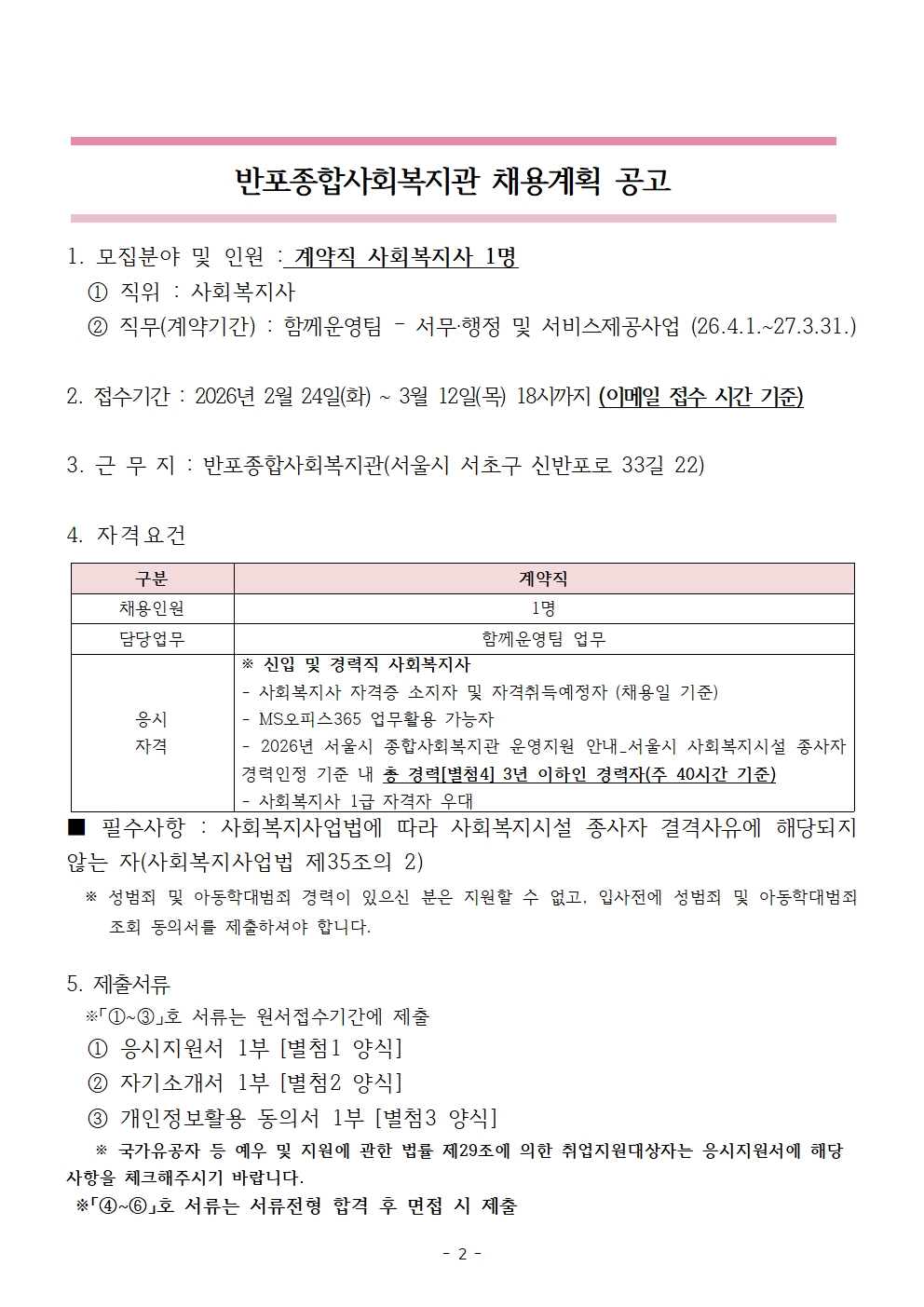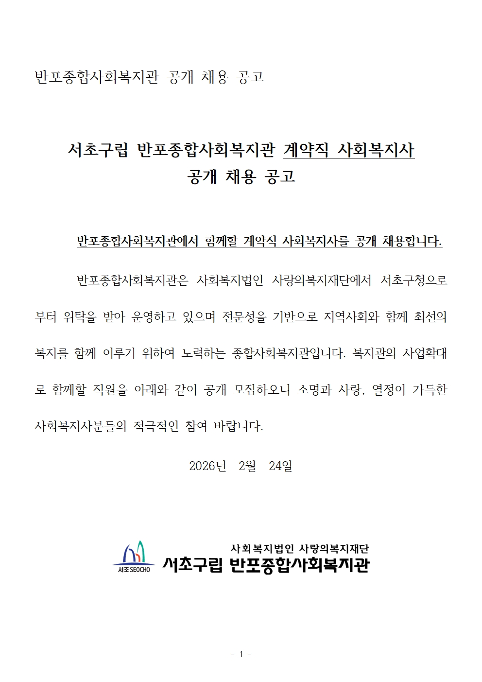 Á¦¸ñ [¹ÝÆ÷Á¾ÇÕ»çȸº¹Áö°ü] °è¾àÁ÷ »çȸº¹Áö»ç °ø°³ ä¿ë °ø°í
